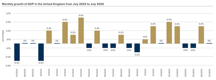 As it continues to battle inflationary pressures, the Bank of England has kept interest rates at 4% but announced it will slow the pace of quantitative tightening. While not offering an outright boost to the economy, the first slowdown in quantitative tightening since it began in 2022, suggests the UKʼs economic recovery remains fragile. Despite a stronger first half of the year, Britainʼs economy flatlined in July, with growth expected to slow through the second half of 2025.