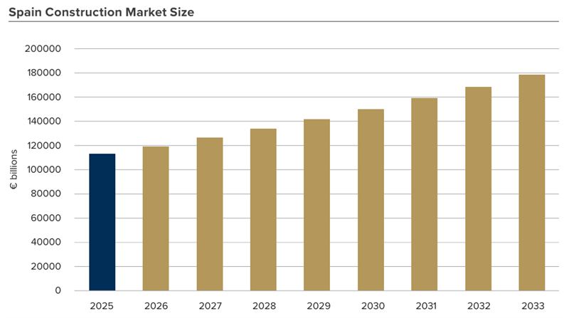 Spainʼs construction and infrastructure firm, Ferrovial, became the first Spanish IBEX 35 company to join the Nasdaq-100 in December 2025, following its US market debut in May 2024. The move reflects the firmʼs growing international footprint and investor appeal, supported by a strong domestic backdrop. Spainʼs construction sector has been a key driver of economic growth, accounting for 10.4% of GDP in gross fixed capital formation and 5.3% of gross value added in 2024. A supportive environment of rising infrastructure investment, urbanisation, and affordable energy has contributed to the sectorʼs expansion. The construction market, valued at €112.7 billion in 2025, is projected to grow at a 5.4% CAGR through 2033, providing a strong foundation for companies such as Ferrovial to expand abroad and attract global capital.