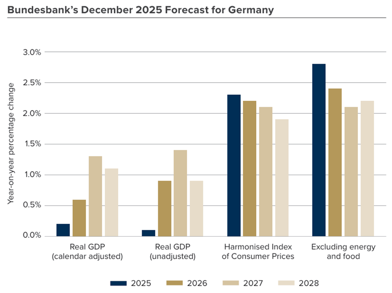 After several years of contraction, the Bundesbank expects the German economy to gradually recover during 2026, with growth gaining momentum from the second quarter onward. The upturn is projected to be supported by increased public investment in infrastructure and other sectors. Additionally, a rebound is expected in exports, housing investment, and private consumption, supported by wage growth.