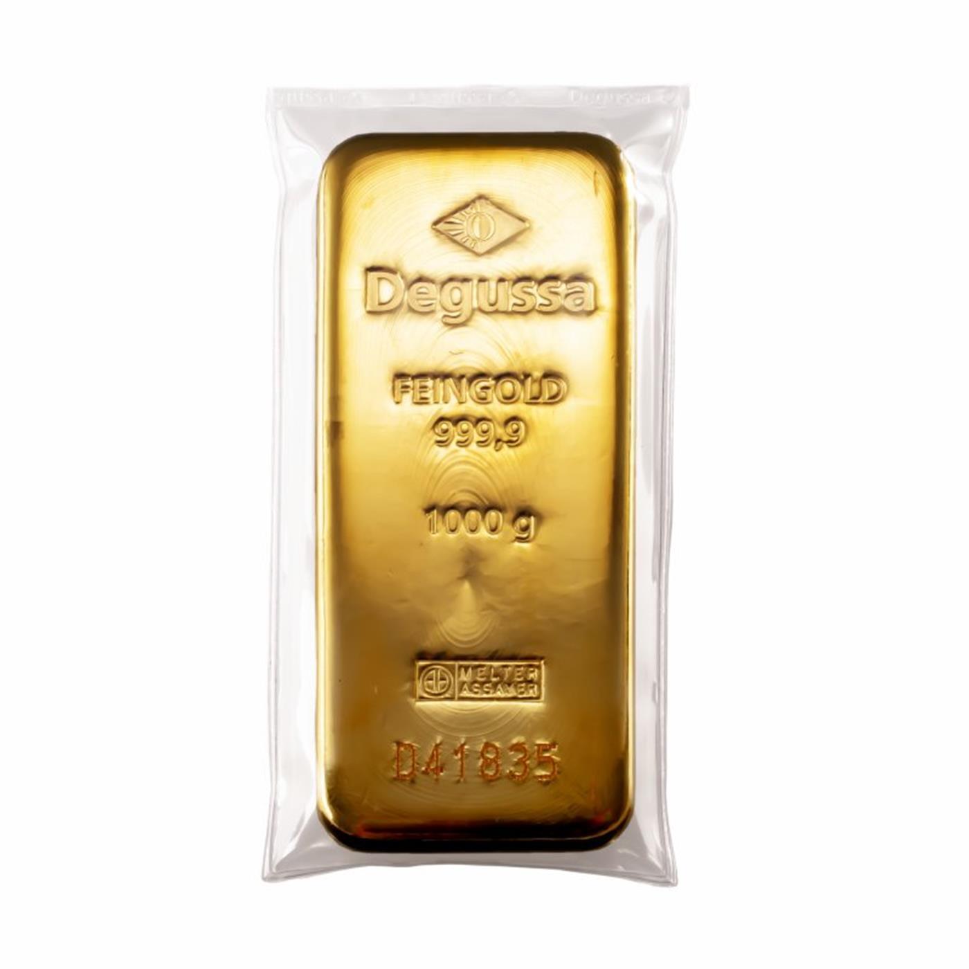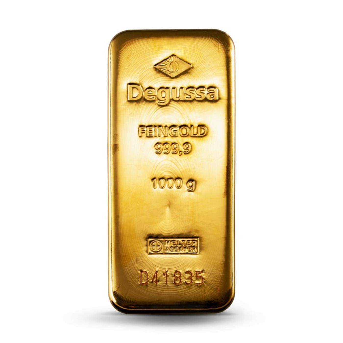 We offer the world-renowned Degussa gold bars in weights from 1g to 1kg. The Degussa bars in sizes 0.5 g, 1g, 2.5g, 5g, 10g, 20g, and 50g are minted, while the larger versions ( 250g, 500g, and 1000g) have the classic cast form. The 1oz and 100g gold bars are available in both minted and cast form.